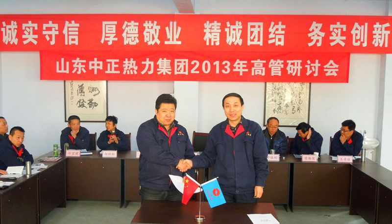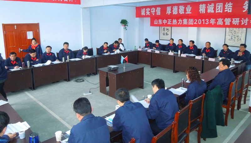 山東中正熱力集團2013年高管研討會于2013年3月29日上午8:00在集團總部三樓會議室召開,會期三天。會議由集團公司董事長李廣法主持,集團公司各部門、各權(quán)屬公司領(lǐng)導(dǎo)參加了會議。會議上,各單位、各部門匯報了2012年度工作報告和精細(xì)化管理實施方案;總經(jīng)理蔣俊卿作年度工作報告,公布兌現(xiàn)2013年度年薪,與各獨立核算單位和部門簽訂2014年度安全、經(jīng)營目標(biāo)責(zé)任書;討論通過了集團中長期規(guī)劃(2014-2023年度)及《全面推進(jìn)集團精細(xì)化管理,為中正品牌和效益的提升而努力》、《集團資本運營管理實施意見》、《關(guān)于完善市場體系建設(shè)的實施意見》三個報告。